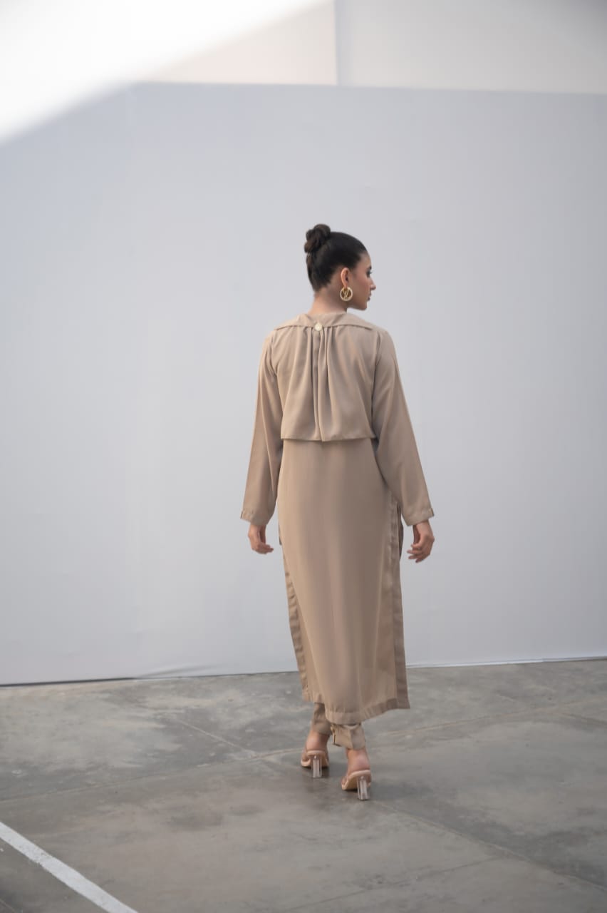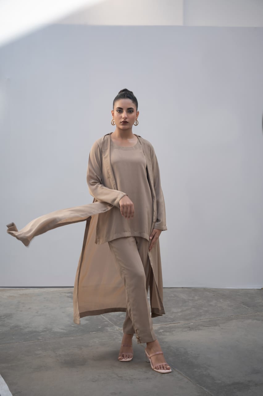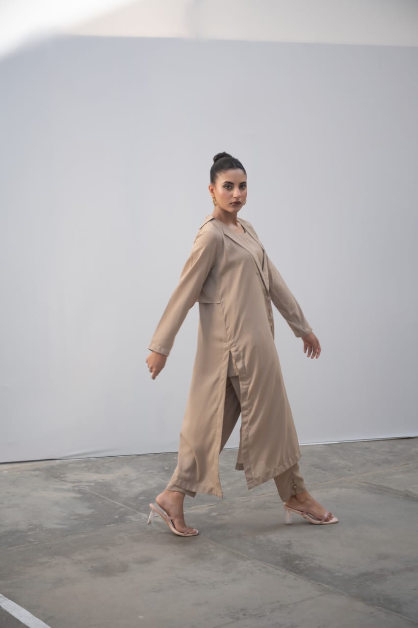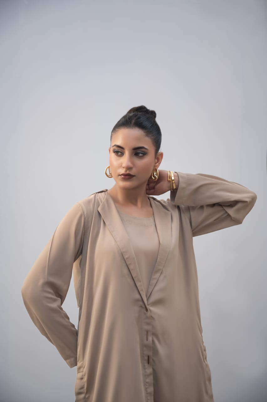This long coat, crafted from durable jorjet material, offers versatile all-season wear. Designed to complement three different suits, it provides a sophisticated and practical outer layer suitable for various occasions. Its quality fabric ensures comfort and longevity, making it an essential addition to any professional wardrobe.